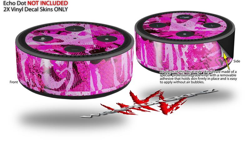 Skin Wrap Decal Set 2 Pack for Amazon Echo Dot 2 - Pink Plaid Graffiti (2nd Generation ONLY - Echo NOT INCLUDED)
