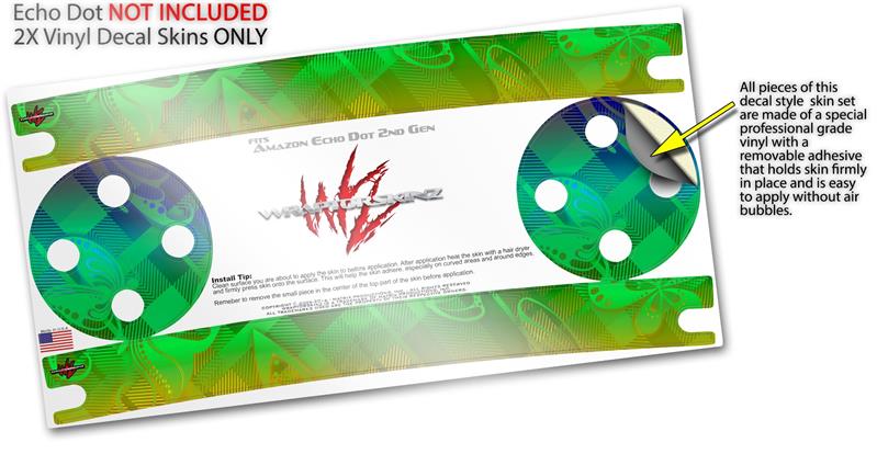 Skin Wrap Decal Set 2 Pack for Amazon Echo Dot 2 - Rainbow Butterflies (2nd Generation ONLY - Echo NOT INCLUDED)
