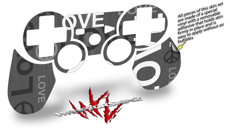 Sony PS3 Controller Decal Style Skin - Love and Peace Gray (CONTROLLER NOT INCLUDED)