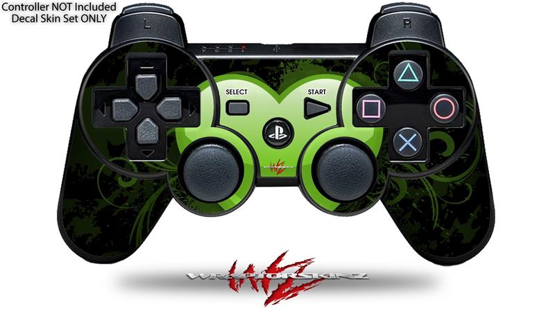 Sony PS3 Controller Decal Style Skin - Glass Heart Grunge Green (CONTROLLER NOT INCLUDED)