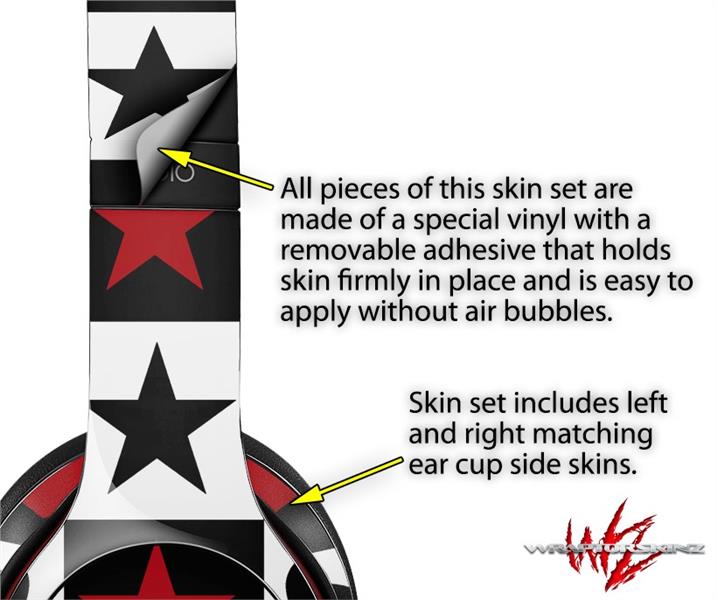 WraptorSkinz Skin Decal Wrap compatible with Beats Solo 2 and Solo 3 Wireless Headphones Hearts and Stars Red (HEADPHONES NOT INCLUDED)