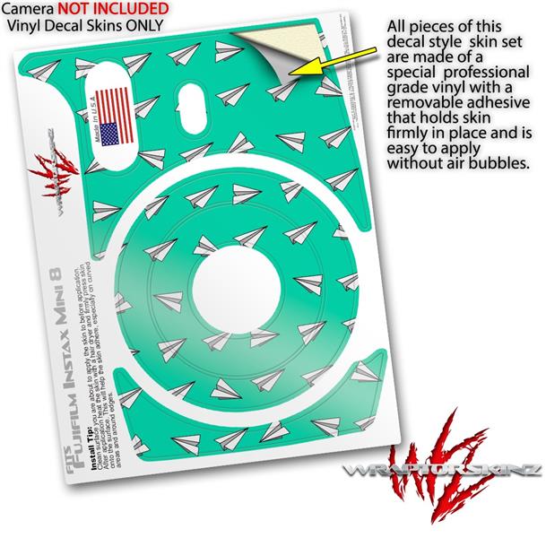 WraptorSkinz Skin Decal Wrap compatible with Fujifilm Mini 8 Camera Paper Planes Turquoise (CAMERA NOT INCLUDED)