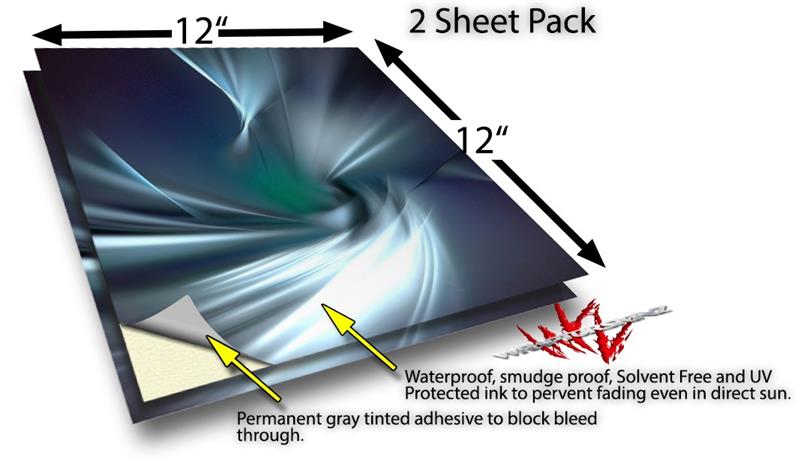 WraptoSkinz™ skin vinyl craft sheets are printed using superb photo quality designs and vibrant colors printed with special UV Protected fade resistant inks that last even in direct sun for years. Unlike other brands our inks are NOT solvent based. WraptorSkinz are a manufactured from professional grade 3mill vinyl. These sheets are waterproof, the designs will not run or smear even if submerged in water.
