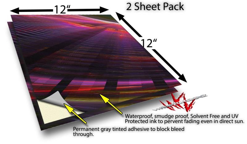 WraptoSkinz™ skin vinyl craft sheets are printed using superb photo quality designs and vibrant colors printed with special UV Protected fade resistant inks that last even in direct sun for years. Unlike other brands our inks are NOT solvent based. WraptorSkinz are a manufactured from professional grade 3mill vinyl. These sheets are waterproof, the designs will not run or smear even if submerged in water.