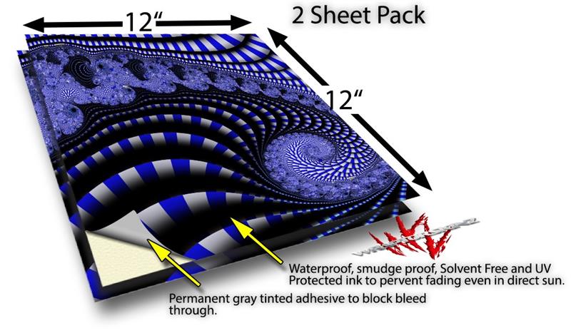 WraptoSkinz™ skin vinyl craft sheets are printed using superb photo quality designs and vibrant colors printed with special UV Protected fade resistant inks that last even in direct sun for years. Unlike other brands our inks are NOT solvent based. WraptorSkinz are a manufactured from professional grade 3mill vinyl. These sheets are waterproof, the designs will not run or smear even if submerged in water.