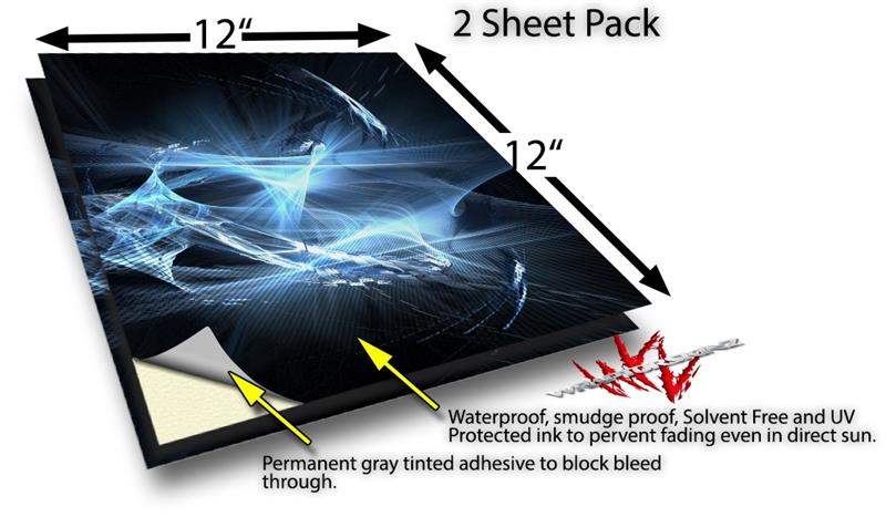WraptoSkinz™ skin vinyl craft sheets are printed using superb photo quality designs and vibrant colors printed with special UV Protected fade resistant inks that last even in direct sun for years. Unlike other brands our inks are NOT solvent based. WraptorSkinz are a manufactured from professional grade 3mill vinyl. These sheets are waterproof, the designs will not run or smear even if submerged in water.