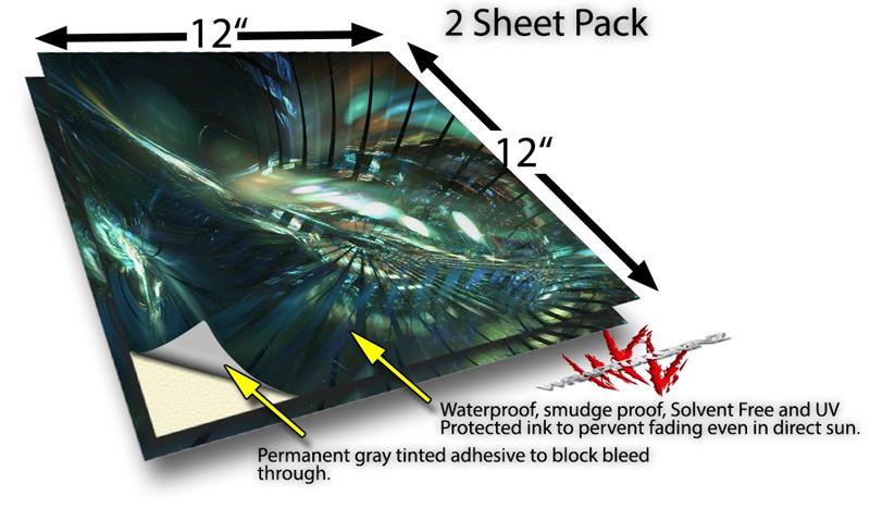 WraptoSkinz™ skin vinyl craft sheets are printed using superb photo quality designs and vibrant colors printed with special UV Protected fade resistant inks that last even in direct sun for years. Unlike other brands our inks are NOT solvent based. WraptorSkinz are a manufactured from professional grade 3mill vinyl. These sheets are waterproof, the designs will not run or smear even if submerged in water.