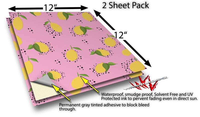 WraptoSkinz™ skin vinyl craft sheets are printed using superb photo quality designs and vibrant colors printed with special UV Protected fade resistant inks that last even in direct sun for years. Unlike other brands our inks are NOT solvent based. WraptorSkinz are a manufactured from professional grade 3mill vinyl. These sheets are waterproof, the designs will not run or smear even if submerged in water.
