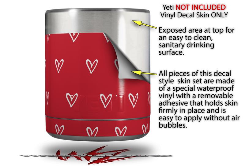Skin Decal Wrap for Yeti Rambler Lowball - Hearts Red On White