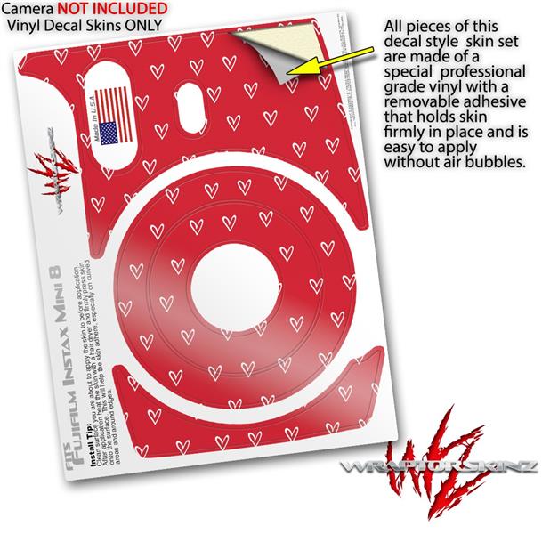 WraptorSkinz Skin Decal Wrap compatible with Fujifilm Mini 8 Camera Hearts Red On White (CAMERA NOT INCLUDED)