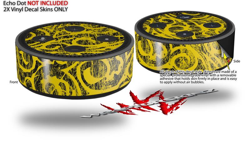 Skin Wrap Decal Set 2 Pack for Amazon Echo Dot 2 - Folder Doodles Yellow (2nd Generation ONLY - Echo NOT INCLUDED)