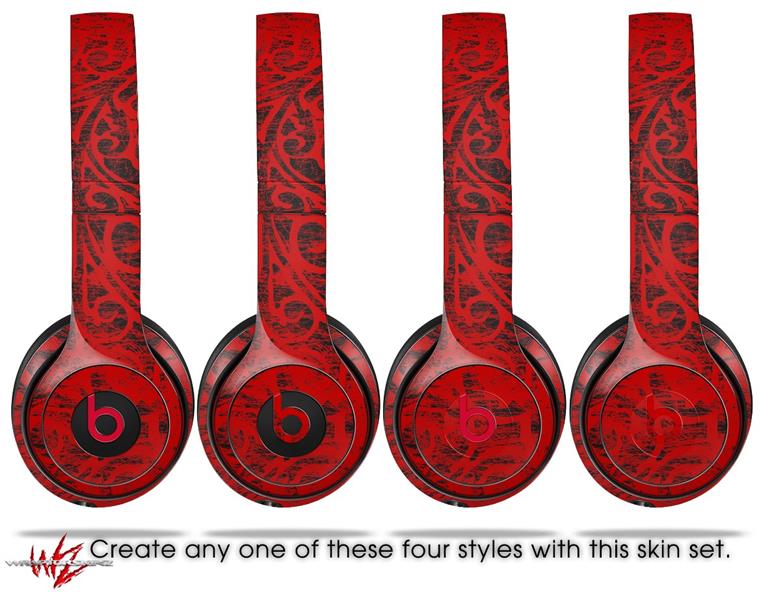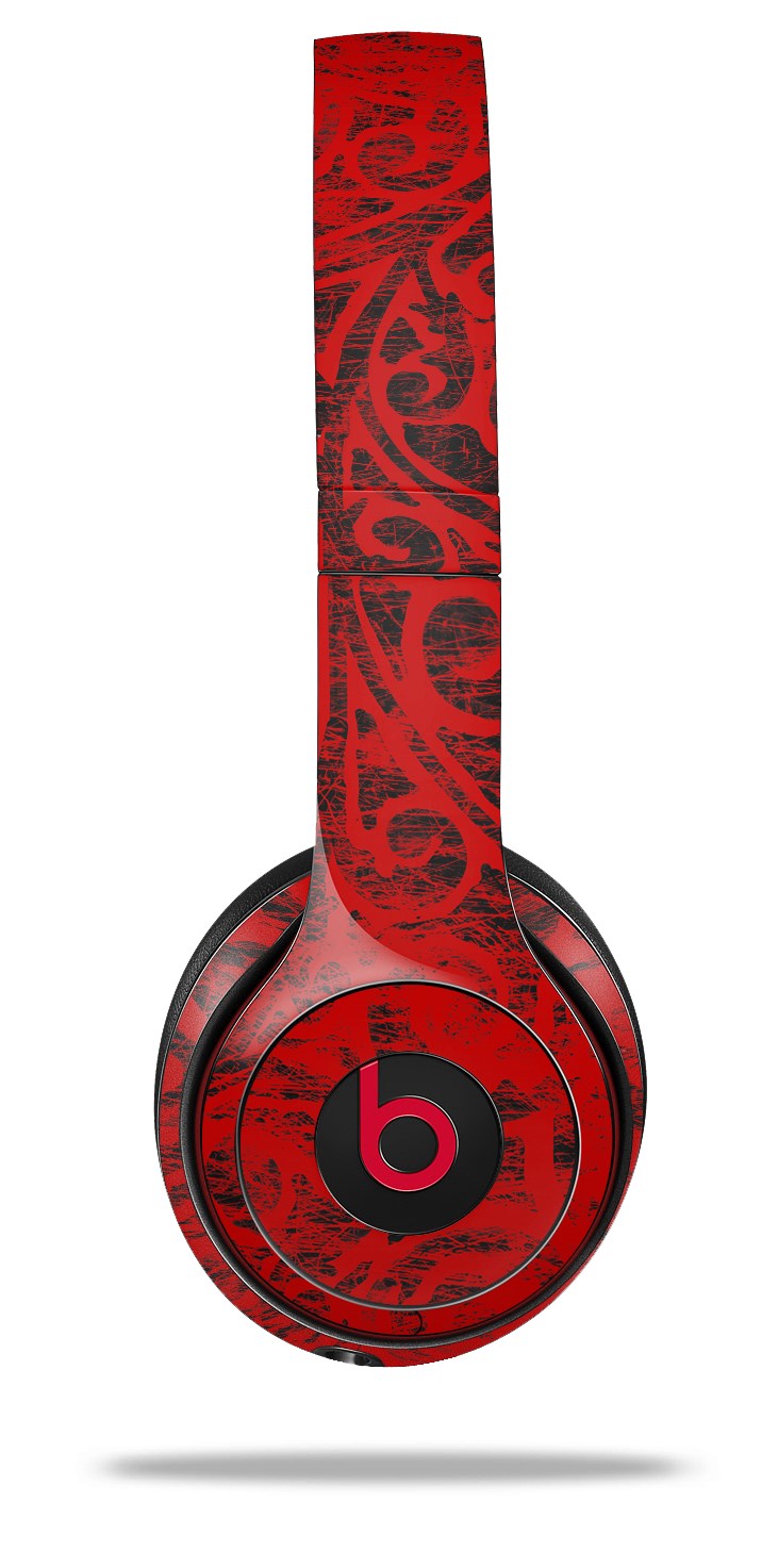 WraptorSkinz Skin Decal Wrap compatible with Beats Solo 2 and Solo 3 Wireless Headphones Folder Doodles Red (HEADPHONES NOT INCLUDED)