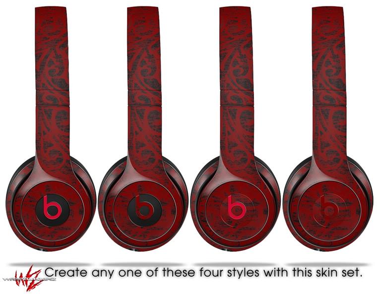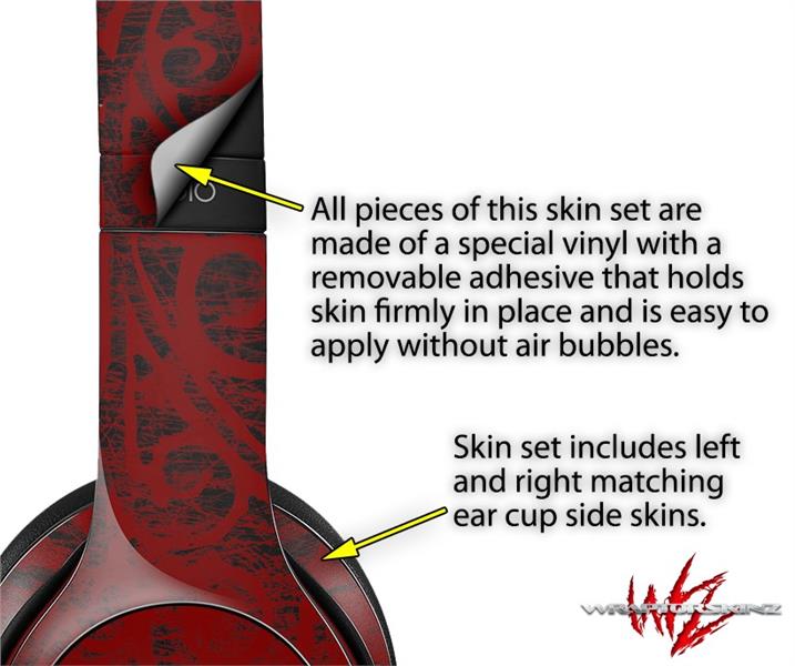 WraptorSkinz Skin Decal Wrap compatible with Beats Solo 2 and Solo 3 Wireless Headphones Folder Doodles Red Dark (HEADPHONES NOT INCLUDED)