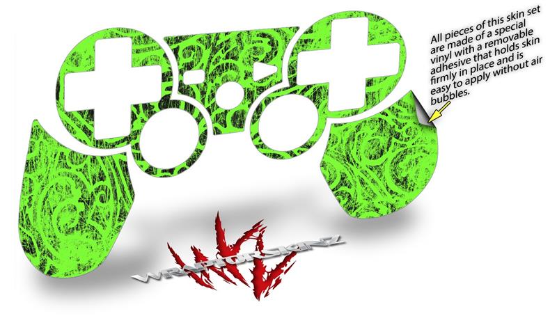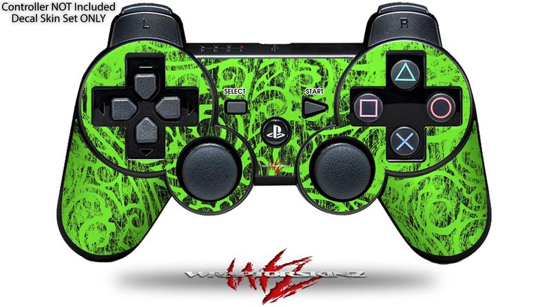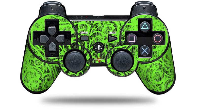 Sony PS3 Controller Decal Style Skin - Folder Doodles Neon Green (CONTROLLER NOT INCLUDED)