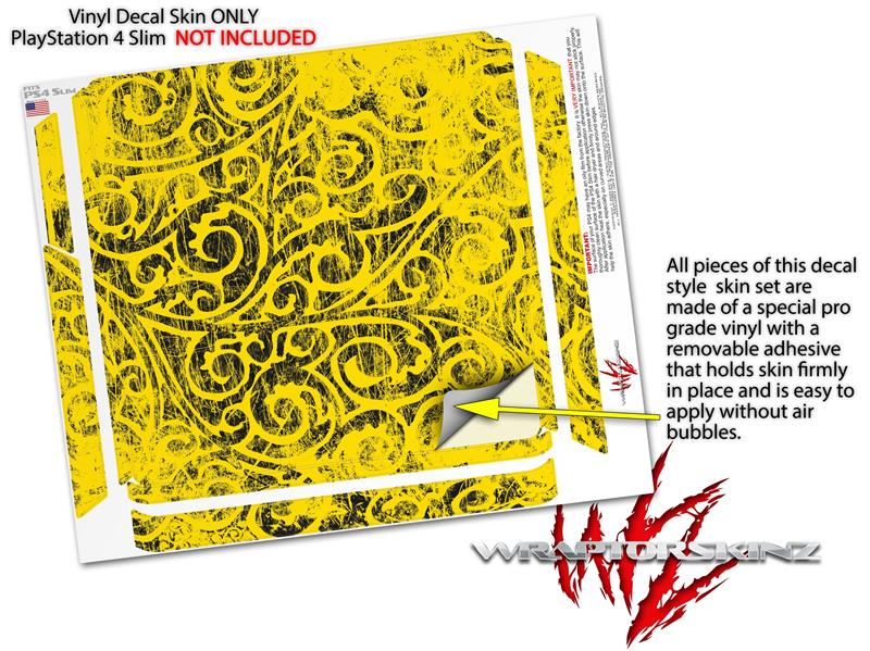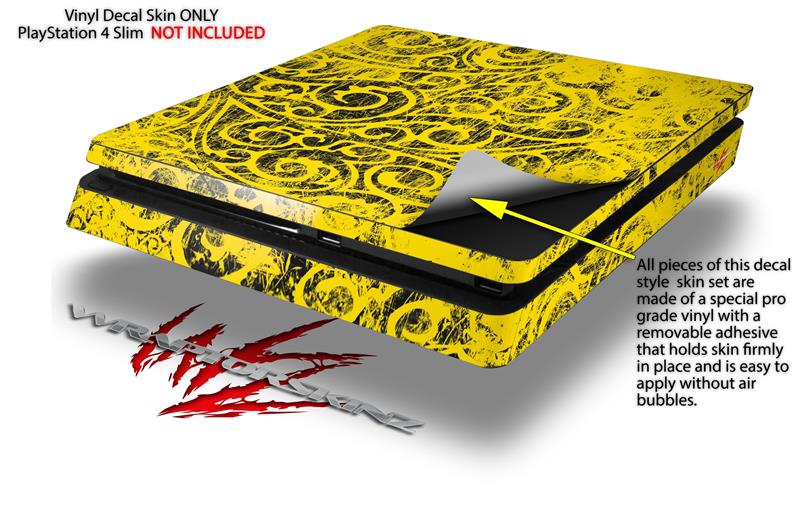 Vinyl Decal Skin Wrap compatible with Sony PlayStation 4 Slim Console Folder Doodles Yellow (PS4 NOT INCLUDED)