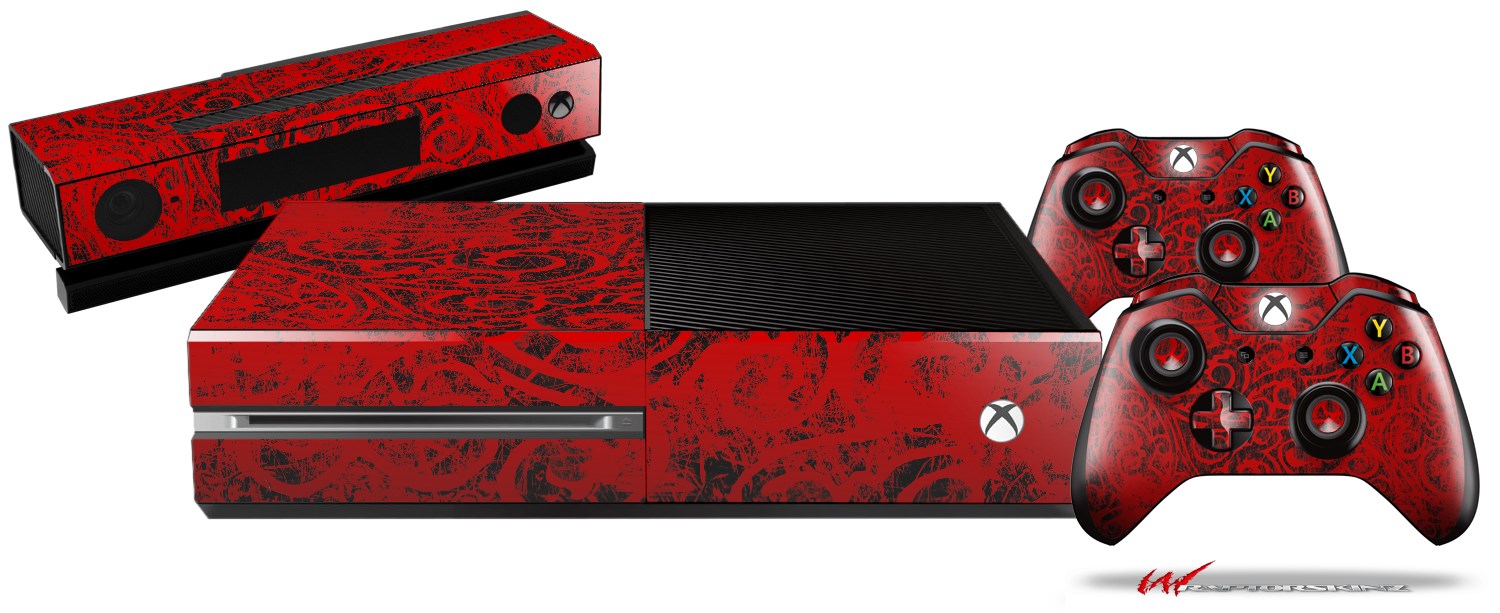 Folder Doodles Red - Holiday Bundle Decal Style Skin fits XBOX One Console Original, Kinect and 2 Controllers (XBOX SYSTEM NOT INCLUDED)