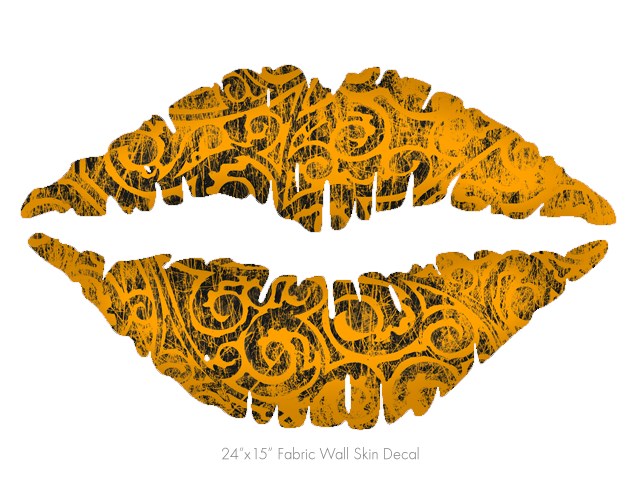 Folder Doodles Orange - Kissing Lips Fabric Wall Skin Decal measures 24x15 inches