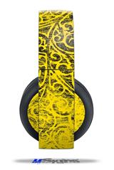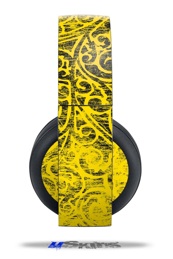 Vinyl Decal Skin Wrap compatible with Original Sony PlayStation 4 Gold Wireless Headphones Folder Doodles Yellow (PS4 HEADPHONES NOT INCLUDED)