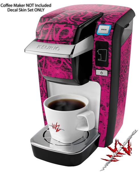 Decal Style Vinyl Skin compatible with Keurig K10 / K15 Mini Plus Coffee Makers Folder Doodles Fuchsia (KEURIG NOT INCLUDED)