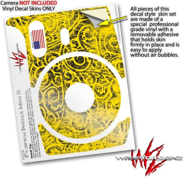 WraptorSkinz Skin Decal Wrap compatible with Fujifilm Mini 8 Camera Folder Doodles Yellow (CAMERA NOT INCLUDED)
