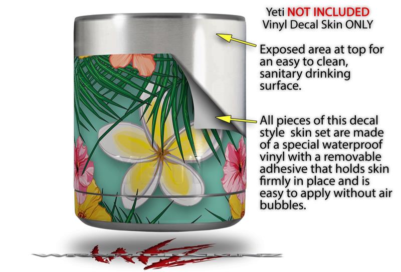 Skin Decal Wrap for Yeti Rambler Lowball - Beach Flowers 02 Seafoam Green