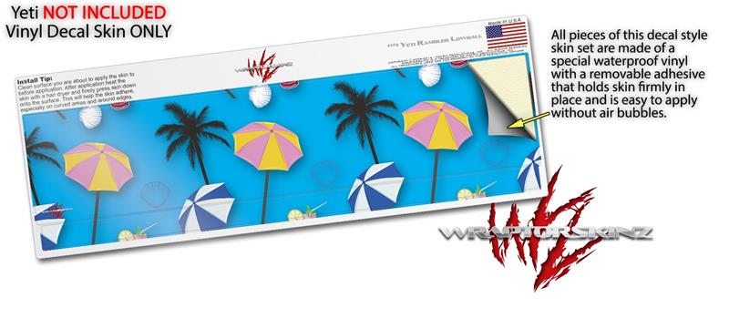 Skin Decal Wrap for Yeti Rambler Lowball - Beach Party Umbrellas Blue Medium