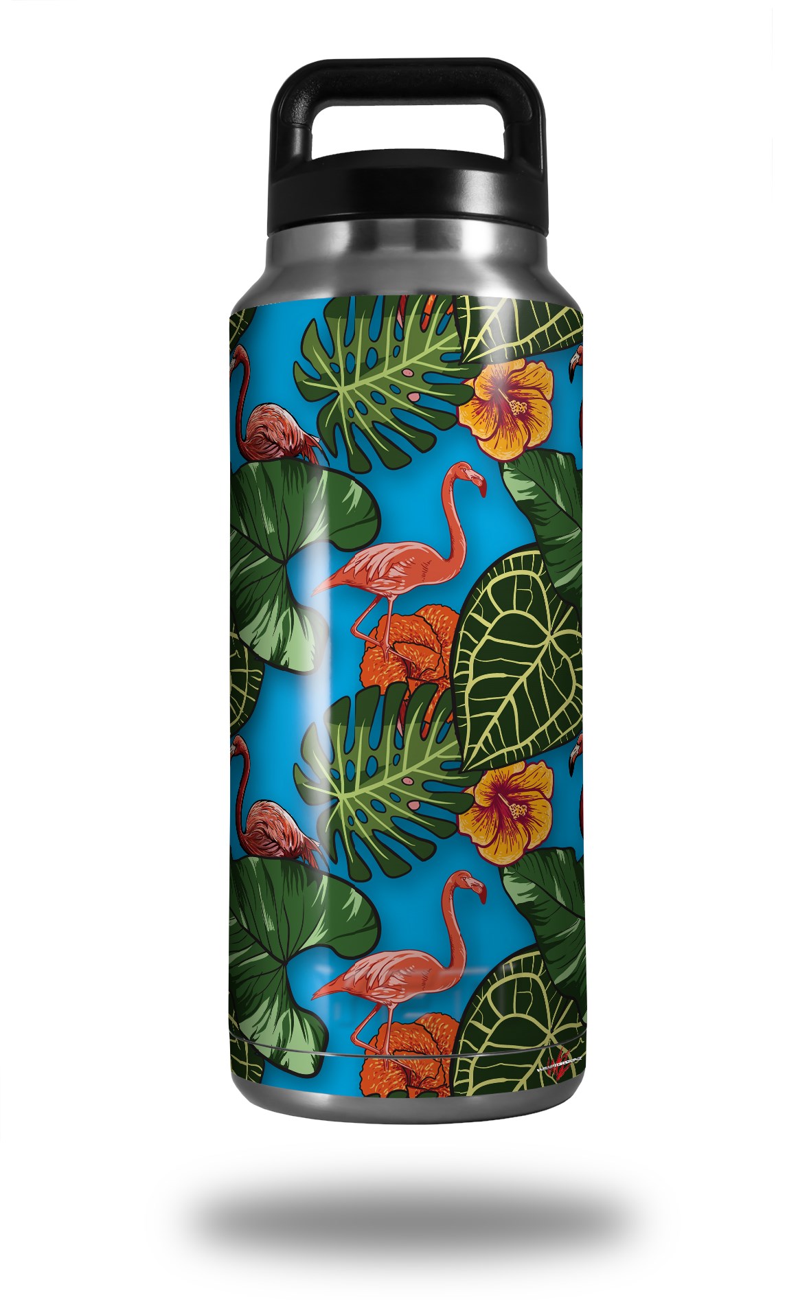 WraptorSkinz Skin Decal Wrap for Yeti Rambler Bottle 36oz Famingos and Flowers Blue Medium (YETI NOT INCLUDED)