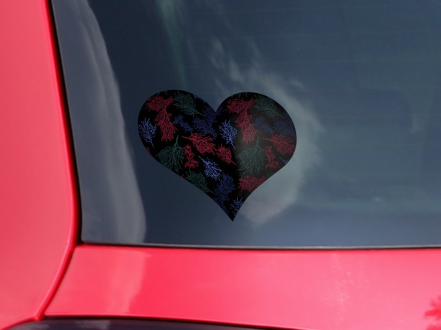 Floating Coral Black - I Heart Love Car Window Decal 6.5 x 5.5 inches