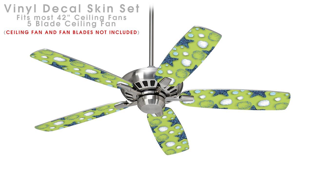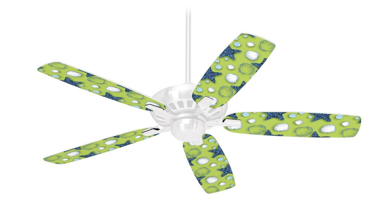 Starfish and Sea Shells Sage Green - Ceiling Fan Skin Kit fits most 42 inch fans (FAN and BLADES SOLD SEPARATELY)