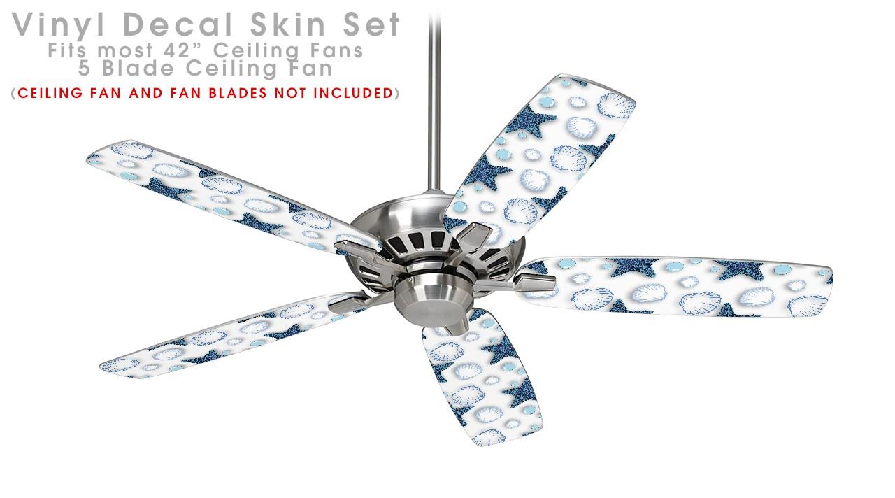 Starfish and Sea Shells White - Ceiling Fan Skin Kit fits most 42 inch fans (FAN and BLADES SOLD SEPARATELY)