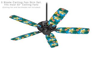 Beach Flowers 02 Blue Medium - Ceiling Fan Skin Kit fits most 52 inch fans (FAN and BLADES SOLD SEPARATELY)