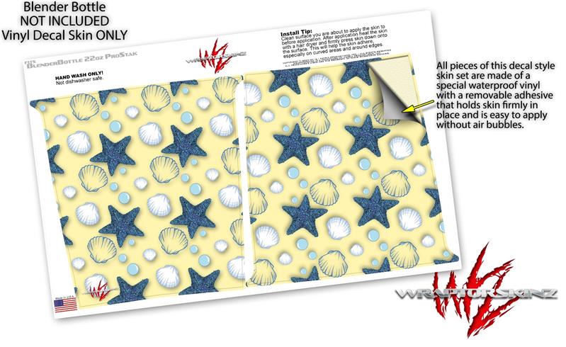 Decal Style Skin Wrap works with Blender Bottle 22oz ProStak Starfish and Sea Shells Yellow Sunshine (BOTTLE NOT INCLUDED)