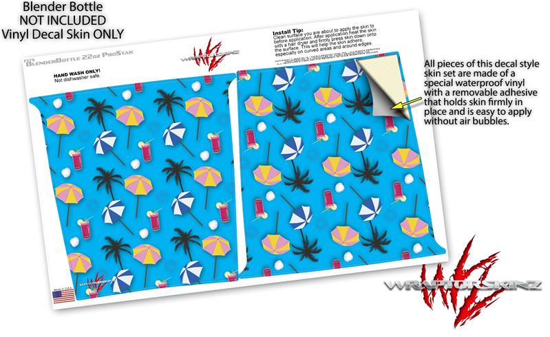 Decal Style Skin Wrap works with Blender Bottle 22oz ProStak Beach Party Umbrellas Blue Medium (BOTTLE NOT INCLUDED)