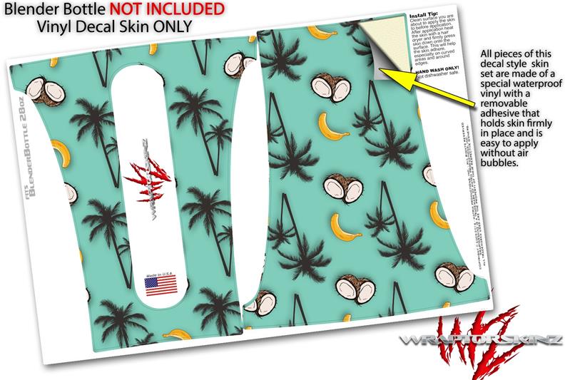 Decal Style Skin Wrap works with Blender Bottle 28oz Coconuts Palm Trees and Bananas Seafoam Green (BOTTLE NOT INCLUDED)