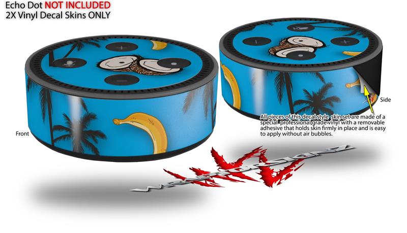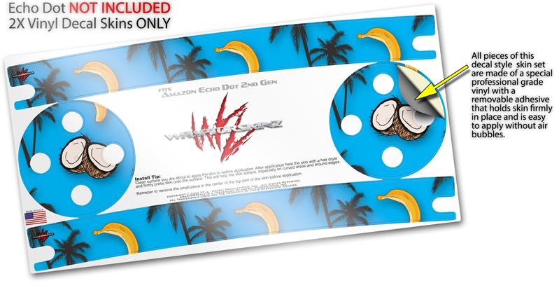 Skin Wrap Decal Set 2 Pack for Amazon Echo Dot 2 - Coconuts Palm Trees and Bananas Blue Medium (2nd Generation ONLY - Echo NOT INCLUDED)