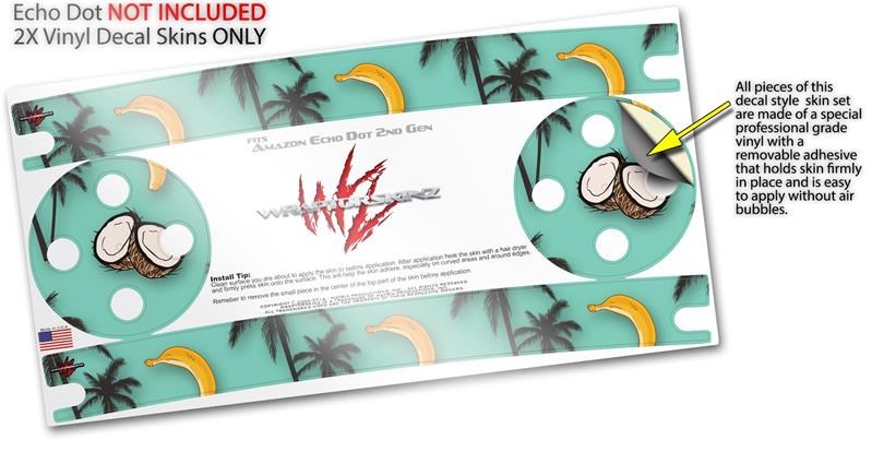 Skin Wrap Decal Set 2 Pack for Amazon Echo Dot 2 - Coconuts Palm Trees and Bananas Seafoam Green (2nd Generation ONLY - Echo NOT INCLUDED)