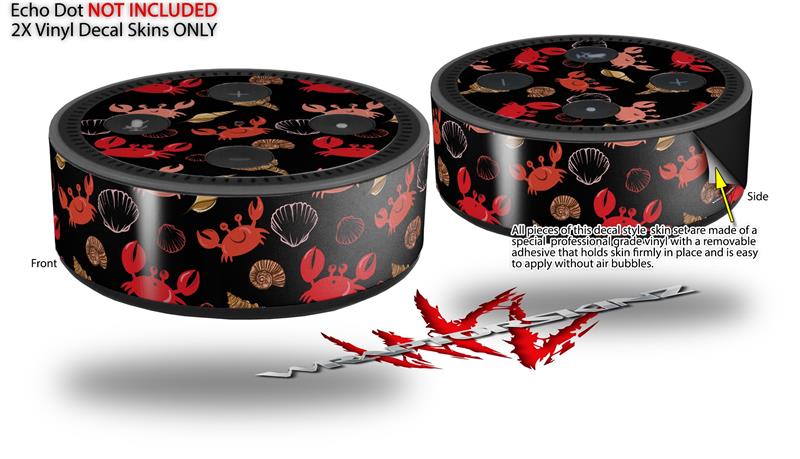 Skin Wrap Decal Set 2 Pack for Amazon Echo Dot 2 - Crabs and Shells Black (2nd Generation ONLY - Echo NOT INCLUDED)