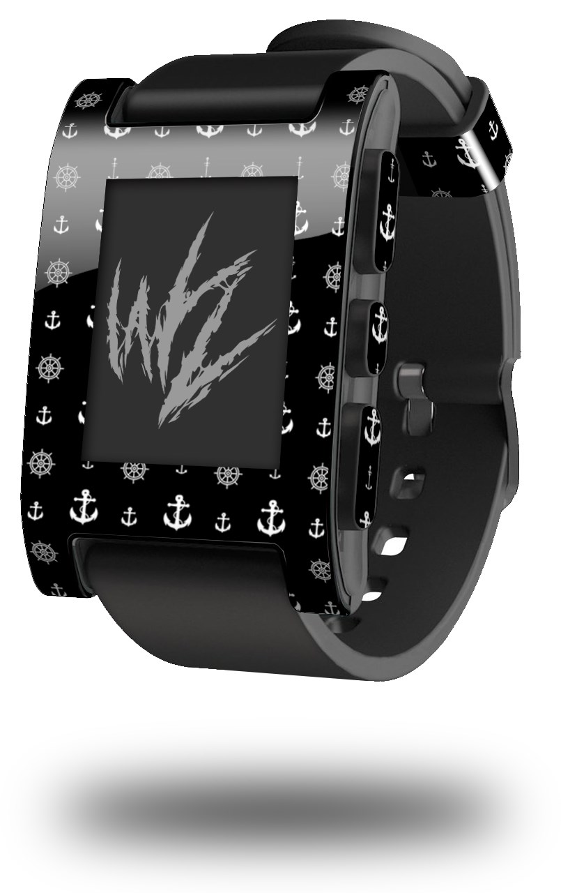 Nautical Anchors Away 02 Black - Decal Style Skin fits original Pebble Smart Watch (WATCH SOLD SEPARATELY)