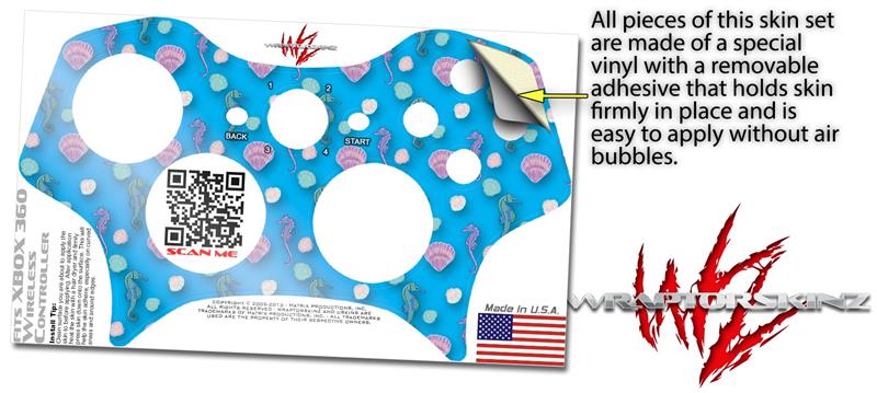 XBOX 360 Wireless Controller Decal Style Skin - Seahorses and Shells Blue Medium (CONTROLLER NOT INCLUDED)