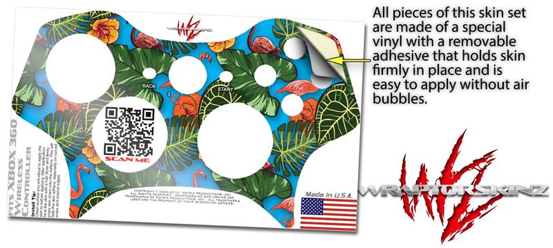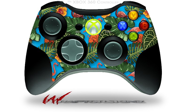 XBOX 360 Wireless Controller Decal Style Skin - Famingos and Flowers Blue Medium (CONTROLLER NOT INCLUDED)