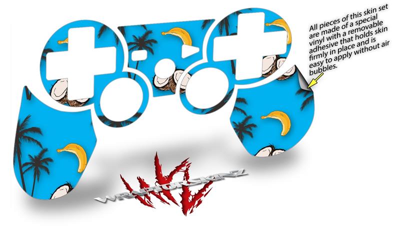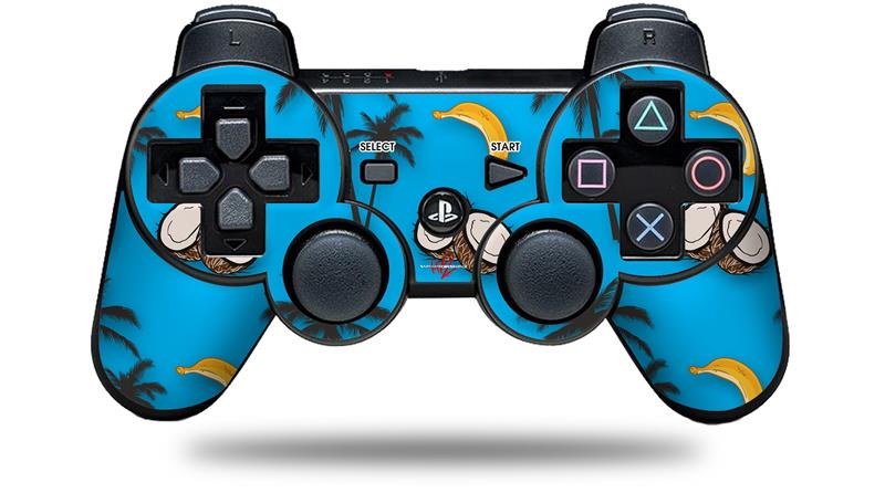 Sony PS3 Controller Decal Style Skin - Coconuts Palm Trees and Bananas Blue Medium (CONTROLLER NOT INCLUDED)