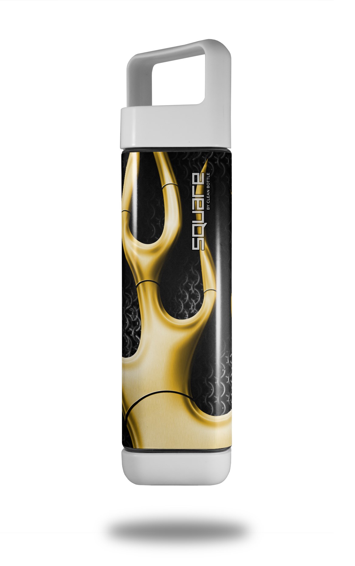 Skin Decal Wrap for Clean Bottle Square Titan Plastic 25oz Metal Flames Yellow (BOTTLE NOT INCLUDED)