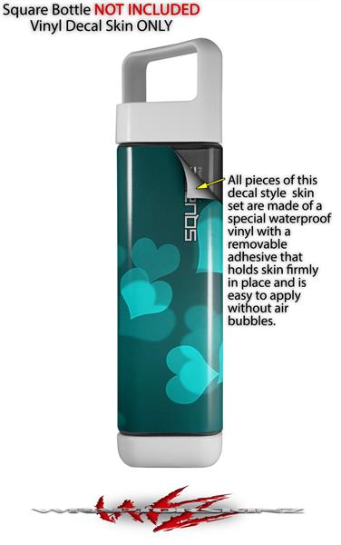 Skin Decal Wrap for Clean Bottle Square Titan Plastic 25oz Bokeh Hearts Neon Teal (BOTTLE NOT INCLUDED)