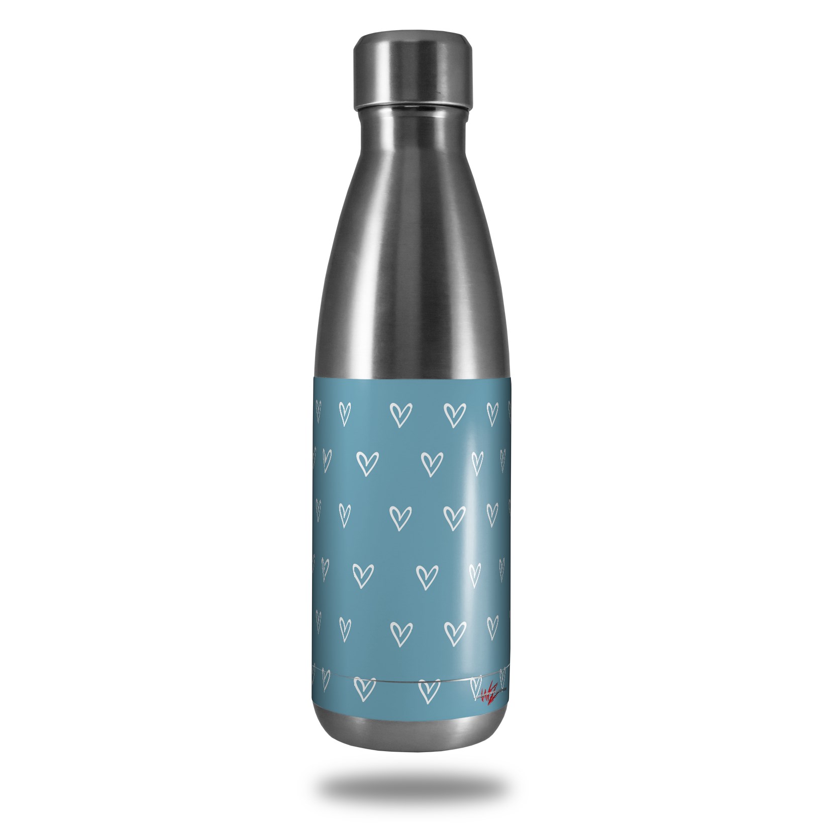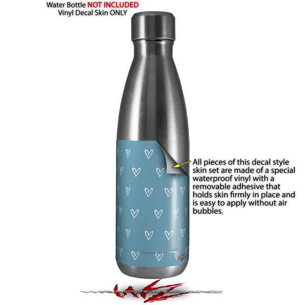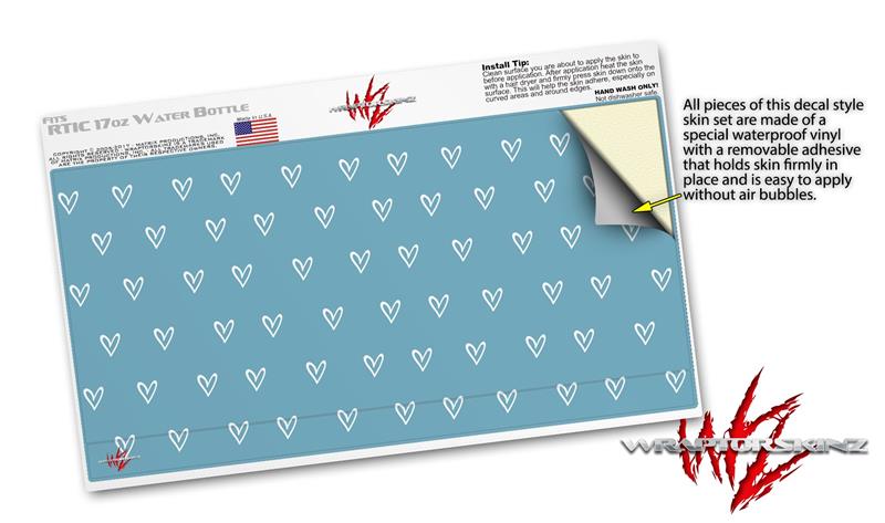 Skin Decal Wrap for RTIC Water Bottle 17oz Hearts Blue On White (BOTTLE NOT INCLUDED)
