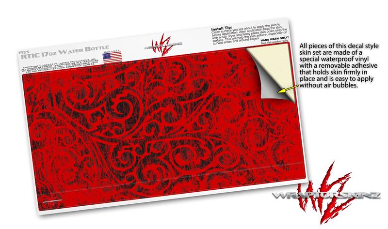 Skin Decal Wrap for RTIC Water Bottle 17oz Folder Doodles Red (BOTTLE NOT INCLUDED)