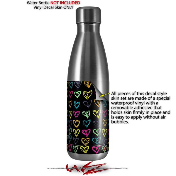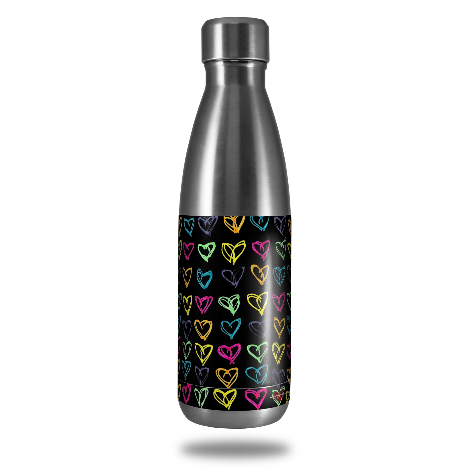 Skin Decal Wrap for RTIC Water Bottle 17oz Kearas Hearts Black (BOTTLE NOT INCLUDED)