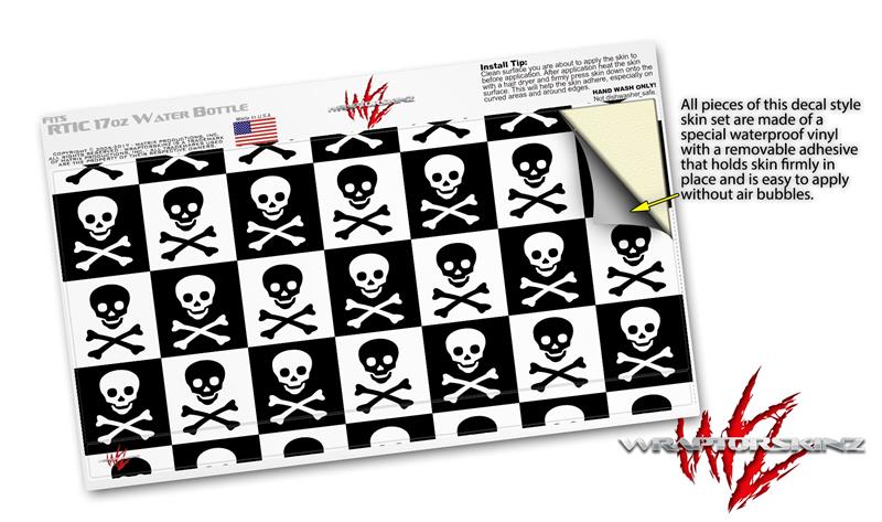 Skin Decal Wrap for RTIC Water Bottle 17oz Skull Checkerboard (BOTTLE NOT INCLUDED)