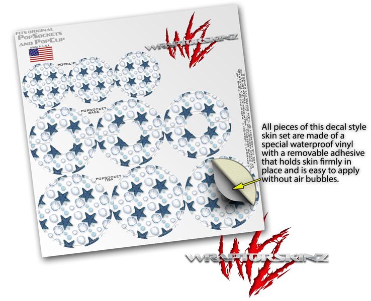 Decal Style Vinyl Skin Wrap 3 Pack for PopSockets Starfish and Sea Shells White (POPSOCKET NOT INCLUDED)